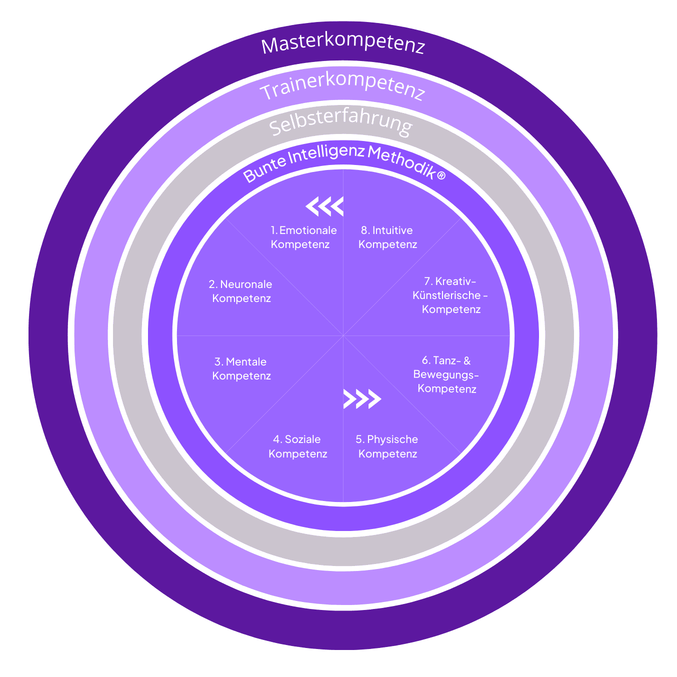 5 Kompetenzfeldern: emotionale, neuronale, mentale, soziale und physische Kompetenz - Professionelles Master-Trainer-Team als Unterstützung für dich