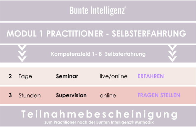 - Teilnahmebescheinigung zum Practitioner nach der Bunten Intelligenz Methodik®